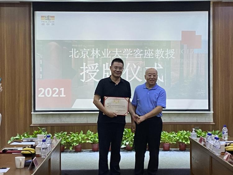 随后,在现场嘉宾们的见证下,于志明为赵崇联颁发了“客座教授”聘书,并发出正式邀请,提出建立霍尔茨木门——北京林业大学北京教学示范基地的建议,希望通过基地,更好地发挥出高等学校和企业在人才资源、科学研究,生产实践等方面的优势,共同培育行业青年人才。面对邀请,赵崇联表示“非常赞同”,霍尔茨也希望通过基地,吸纳更多优秀的专业人才,为企业发展注入年轻力量,共同开创出更具客户价值的新产品,为行业做出更多贡献。