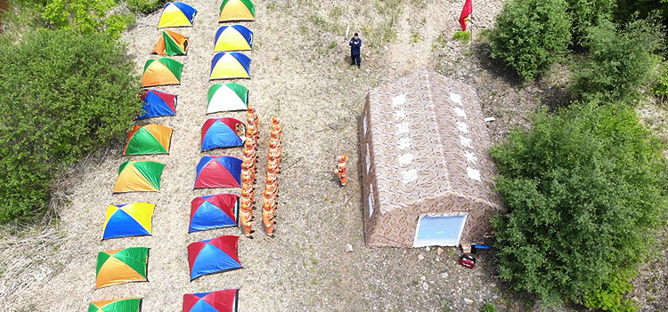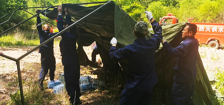抵达驻训地域,各小组按照预案各司其职,齐心协力对宿营地进行整理,搭建布置指挥部、炊事区、野外宿营区和停车区等。为做好驻训期间伙食保障,森林防火应急管理处科学制定伙食保障方案,在食品质量、烹饪制作、饮食安全等方面严格把关,保证参训人员吃饱、吃好。