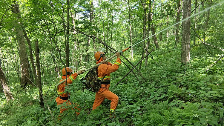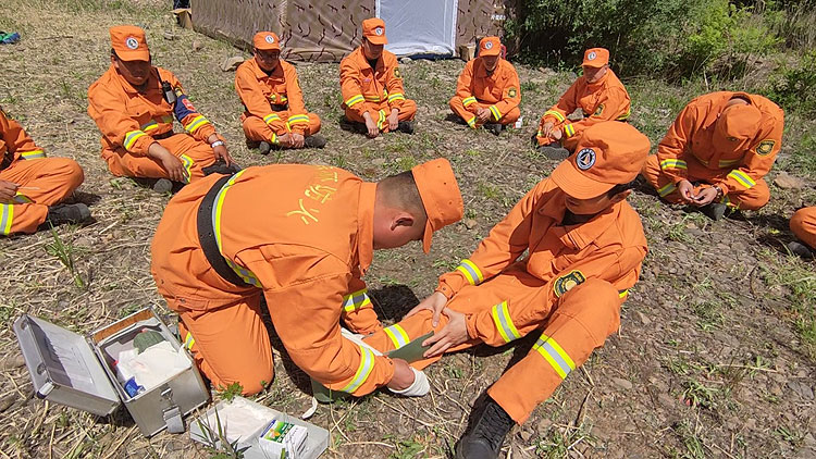 驻训开始后,指挥员科学运用野外化、模拟化、实战化等手段,营造训练氛围,强化训练标准,以便提高队伍整体实战化训练水平,有效检验扑火队员专业技术水平。参训队坚持练为抓手、训为实战,加强装备操作、战术运用,重点围绕水泵架设,即远程输水45°和60°山坡单泵架设及串联泵架设,以及无人机侦查、包扎与救护、紧急避险等科目开展训练。期间,现场讲解火场紧急避险措施,进一步增强参训人员火场避险安全意识和能力。