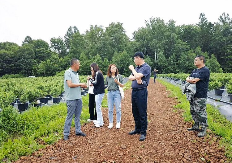 在板石河林场基质蓝莓地现场,调研组实地查看了基质蓝莓长势,了解了松林公司关于基质蓝莓合作经营情况介绍,现场询问基地集约化管理情况。调研组对松林公司借助长白山地区特有的气候条件,积极探索绿色生态种植模式,加快栽种技术创新与新品种研发,不断延伸蓝莓产业链条,提升附加值等做法表示赞许。调研组建议,从标准化种植和特征品质提升出发,打造长白山蓝莓标准化种植基地,不断提升蓝莓品牌影响力,让蓝莓产业成为企业高质量发展的新名片。