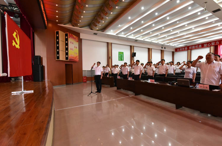 为庆祝中国共产党成立99周年,重温当年入党时面对党旗许下的铮铮誓言,教育引导全局广大党员永远牢记党员身份,坚定爱党、信党、跟党走的理想信念,7月1日,泉阳林业局党委在机关一楼会议室组织开展了庆祝建党99周年暨“坚定信念守初心、矢志前行勇担当”重温入党誓词活动。 中共泉阳林业局第九届委员会全体委员、各基层党组织书记、副书记,行政负责人(党员)和机关全体党员参加此次活动。活动由党委副书记、纪委书记、工会主席安茂秋同志主持。