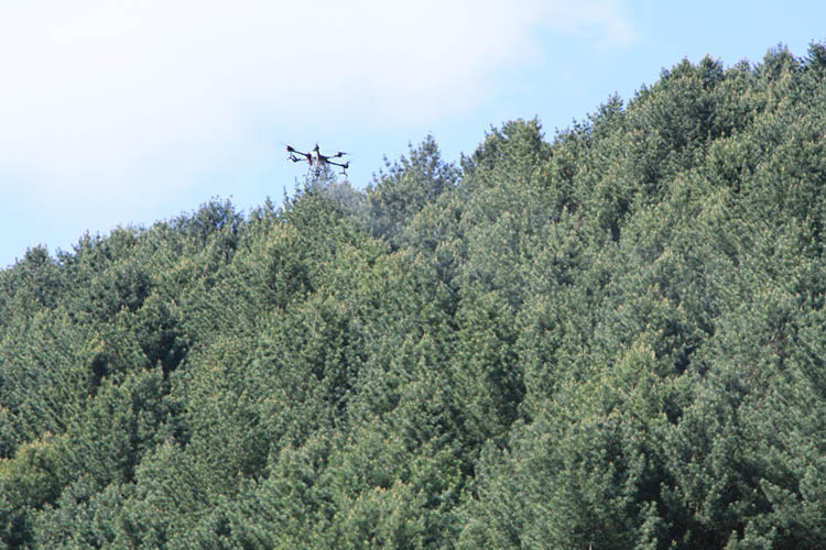 在试点工作实施过程中,临江林业局森防检疫站工作人员在生物防治试验区,分别于红松球果害虫的蛹期、卵期,投放红松梢斑螟啮小蜂3000管、赤眼蜂1000卡;在药剂防治试验区,对试验区进行无人机喷施不同配比的8%噻虫胺·功夫微囊悬浮剂、5%杀铃脲悬浮剂;在烟剂防治试验区,施放烟碱·苦参碱烟剂。